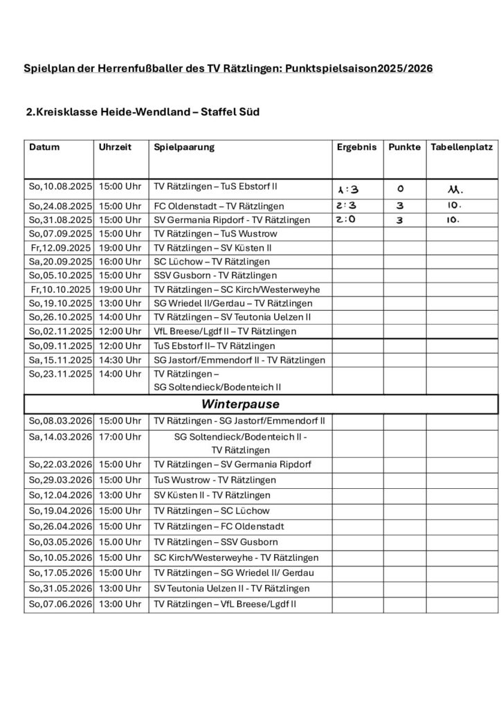 Die Herrenfußballmannschaft nimmt in der Saison 2025/26 in der 2. Kreisklasse -Staffel Süd- am Punktspielbetrieb teil.